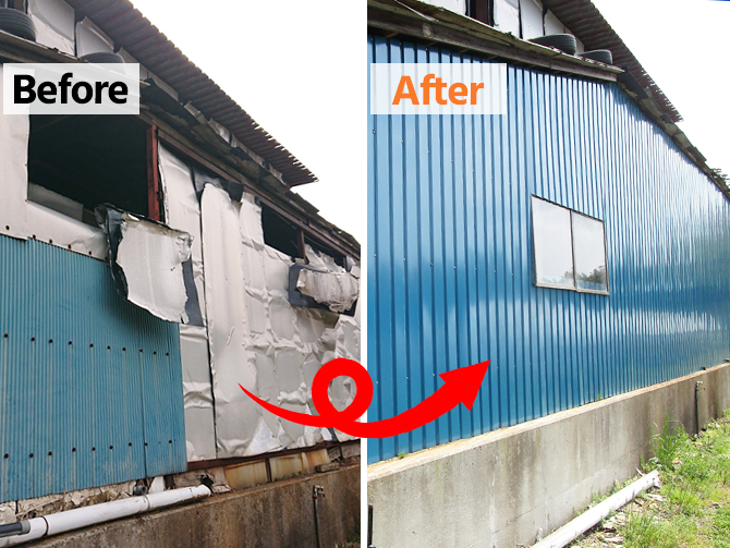【市原市】整備工場の外壁リニューアル|金属サイディング張替え工事