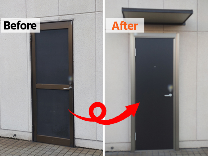 【千葉市中央区】倉庫ドアのカバー工事+庇取付け|雨の日も安心の出入口リフォーム